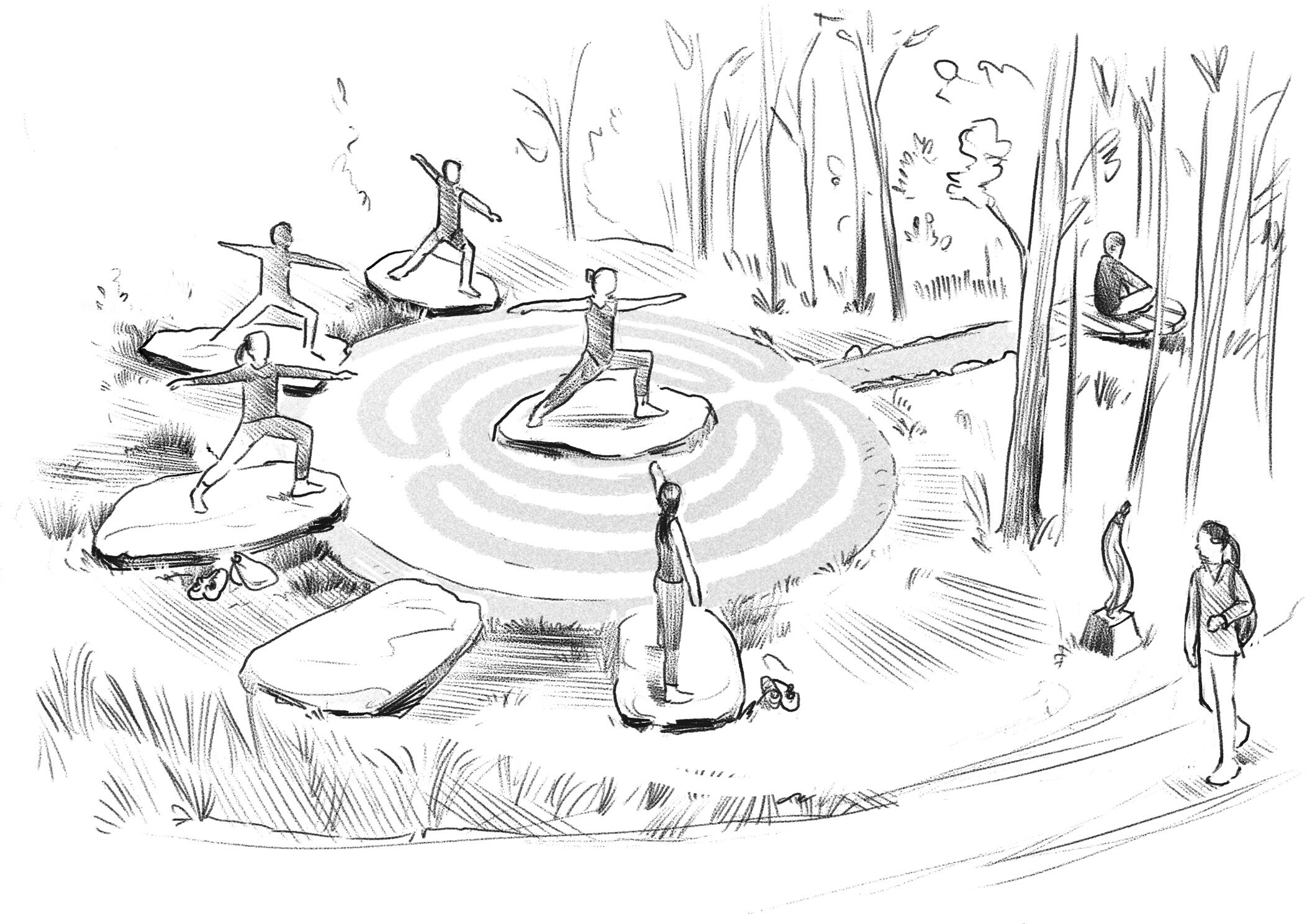 La visione Pian Scairolo Back Doors mira a creare un accesso a esperienze rigenerative e ispiratrici, collegando il piano alla Collina d'Oro. Con un approccio sostenibile e culturale, il progetto si propone di curare il territorio, il benessere dei collaboratori e l'esperienza del cliente anche fuori dall'azienda. Sono stati sviluppati tre temi: valorizzazione del parco giochi comunale, un itinerario yoga e contemplazione nel bosco, e un giardino di land art.